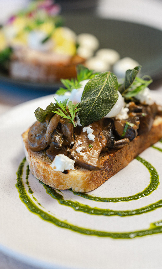 Mushrooms on Toast Forest Mushroom Bourguignon, Poached Egg, Goats Cheese, Fried Sage, Chargrilled Local Sourdough | 22 (V)